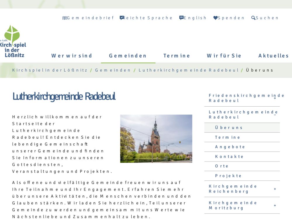 Radebeuler Kirchgemeinde welche in der 1892 erbauten Lutherkirche in Radebeul Ost ihre Gottesdienste und andere Feste feiertGemeinde-Info