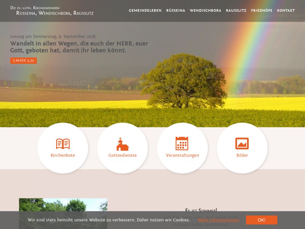 Die Ev.-Luth. Kirchgemeinde Rüsseina ist Teil des Kirchspieles Nossener Land und bildet den Pfarrsitz für den Seelsorgebereich Rüsseina, Raußlitz, Wendischbora sowie Leuben-Ziegenhain-Planitz. Sie ist eine typische Landgemeinde der Lommatzscher Pflege, die durch sehr viele Kleindörfer geprägt ist. Mehrere lebendige Gemeindekreise gestalten das Gemeindeleben recht bunt. Die große Dorfkirche - eine der größten Dorfkirchen in Sachsen - bietet wunderbare Möglichkeiten für Gottesdienste und kirchliche Konzerte.Gemeinde-Info