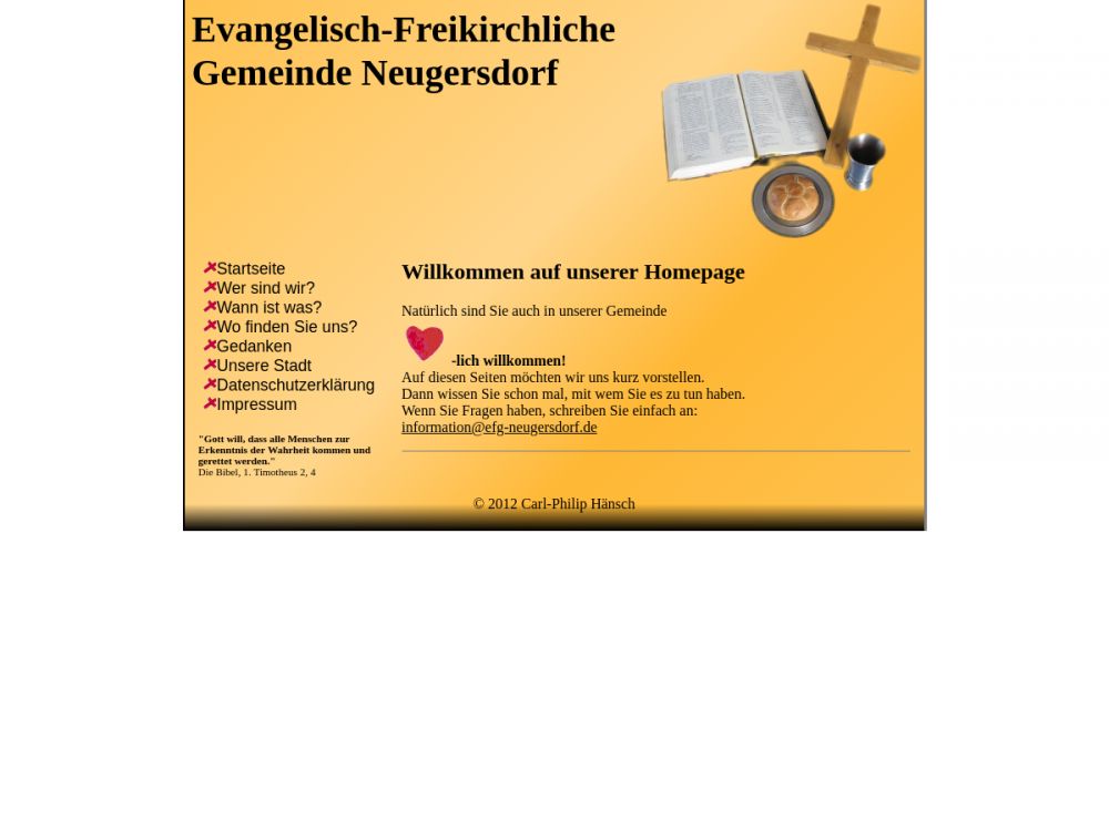 | Gemeindeart: | Evangelisch-Freikirchliche Gemeinde (EFG, Baptisten, Brüder) |