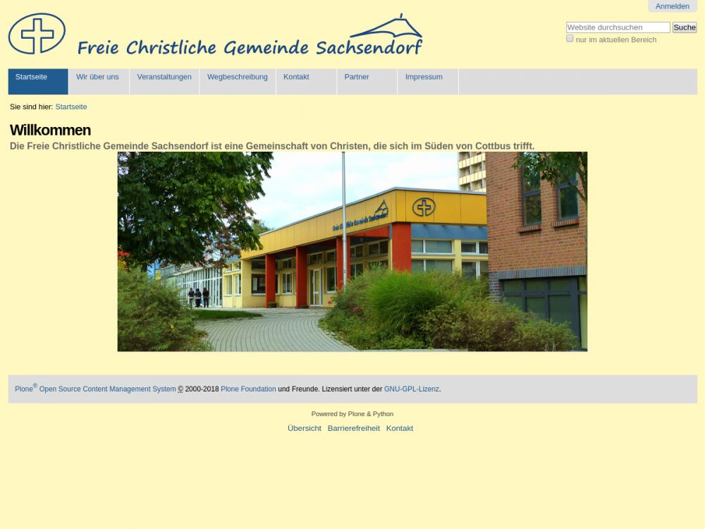 Die Freie Christliche Gemeinde Sachsendorf (FCG Sachsendorf) ist eine junge Gemeinde. Sie entstand Mitte der 1990er Jahre aus einem Hauskreis des kanadischen Ehepaares Harvey und Selma Boldt im Cottbuser Stadtteil Sachsendorf-Madlow. Anfangs trafen sich hier vor allem Studenten und Jugendliche. Heute sind wir eine bunt gemischte Gruppe.Wir sind als Gemeinde frei, das heißt unabhängig von kirchlichen oder religiösen Organisationen. Trotzdem oder gerade deswegen wissen wir uns verbunden mit allen wirklichen Christen – unabhängig davon, welcher Gruppe sie angehören. Unter Christ-Sein verstehen wir, das Leben im Glauben an Jesus Christus zu führen, der unser Retter und Herr ist. Christ wird man nicht durch Hineinwachsen in Traditionen, sondern durch bewusste Umkehr zu Jesus Christus.