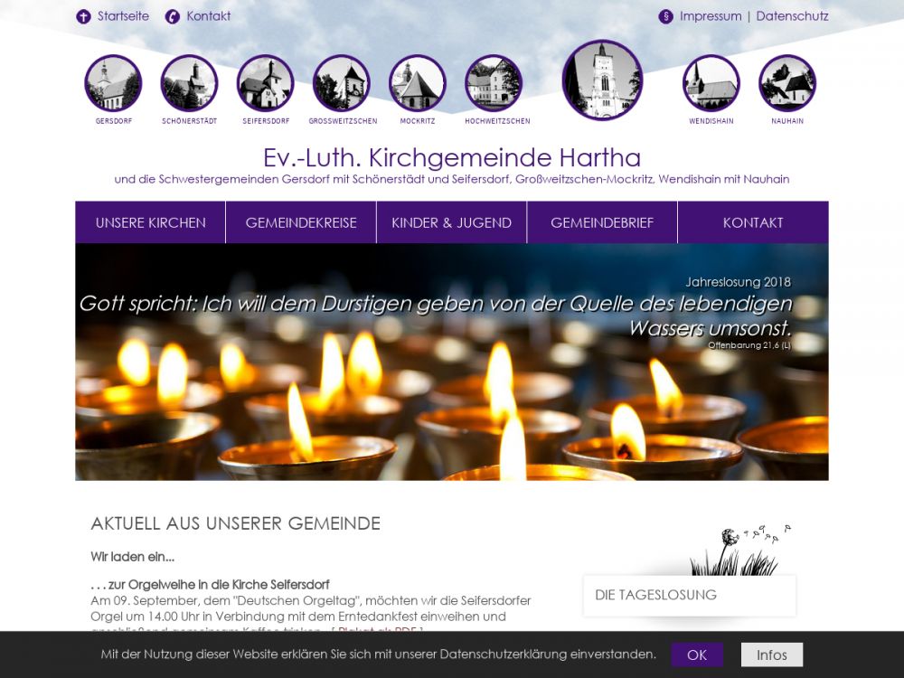 Die Ev.-Luth. Kirchgemeinde Hartha - umfasst seit 01.01.2020 die ehemaligen Kirchgemeinden Gersdorf, Großweitzschen-Mockritz, Hartha und Wendishain.Gemeinde-Info