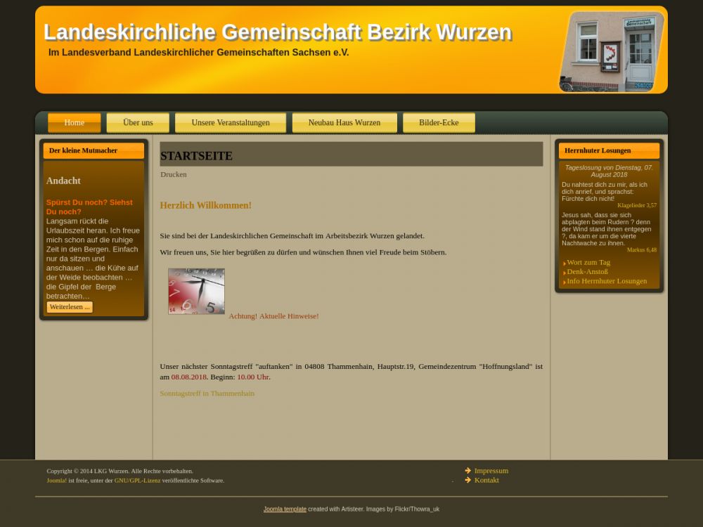 | Gottesdienst: | 14 tägig Sonntag 10:00 Uhr |