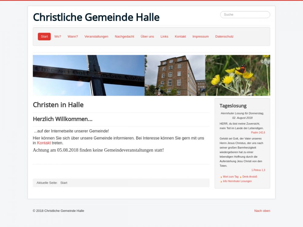 | Gottesdienst: | Sonntag 09:30 Uhr Abendmahl; Sonntag 10:45 Predigt; Dienstag 19:30 Gebet- und Bibelstunde |