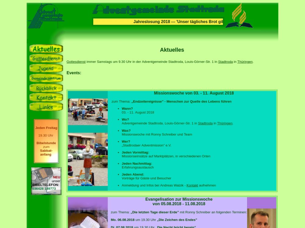 | Gottesdienst: | Samstag 9:30 Uhr |