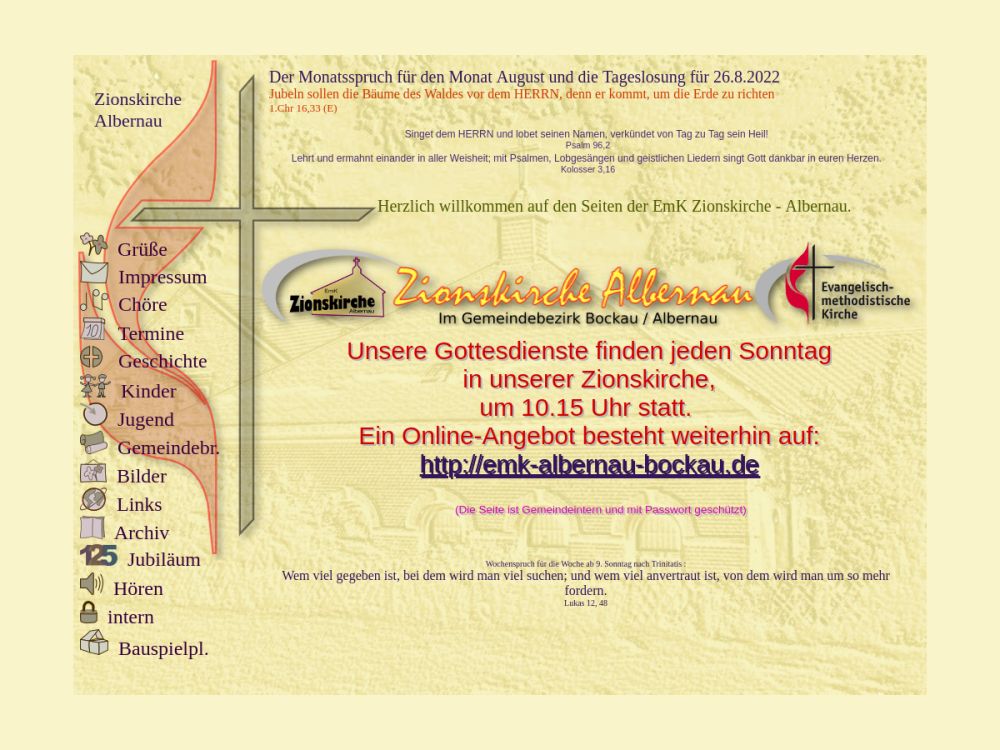 | Gottesdienst: | Sonntags 10.15 Uhr |