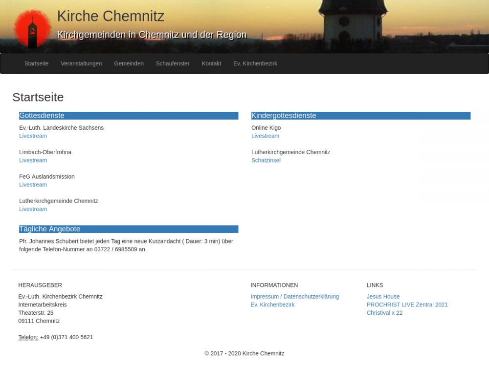 Wir sind eine landeskirchliche Gemeinde, entstanden 2020 durch Zusammenlegung der St.-Michaelis-Kirchgemeinde Altchemnitz und der Lutherkirchgemeinde Harthau.Gemeinde-Info