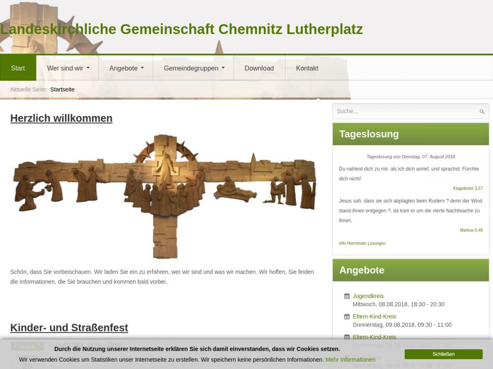 Wir sind Menschen, die an Jesus Christus glauben. Das prägt unser Leben, unseren Alltag und den Umgang miteinander. Wir sind Menschen mit ganz normalen Berufen und unterschiedlicher sozialer Herkunft. Einer braucht den anderen und deshalb sind wir füreinander und für andere da. Um diese Gemeinschaft zu leben, gibt es bei uns Angebote für jedes Alter und für verschiedene Interessen. Ob Single oder Familie, jung oder jung geblieben - jeder kann dabei sein und ist herzlich willkommen. Gemeinsam lesen wir die Bibel, beten, singen und musizieren, tauschen uns über Erfahrungen aus, teilen Freud und Leid, feiern und gestalten Gottesdienste und vieles mehr ...Die Landeskirchliche Gemeinschaft ist Teil des Netzwerkes der evangelisch - lutherischen Kirche und gehört zur evangelischen Allianz in der Stadt Chemnitz. Der Sächsische Gemeinschaftsverband und der evangelische Gnadauer Gemeinschaftsverband sind die landes- und bundesweiten Dachverbände.