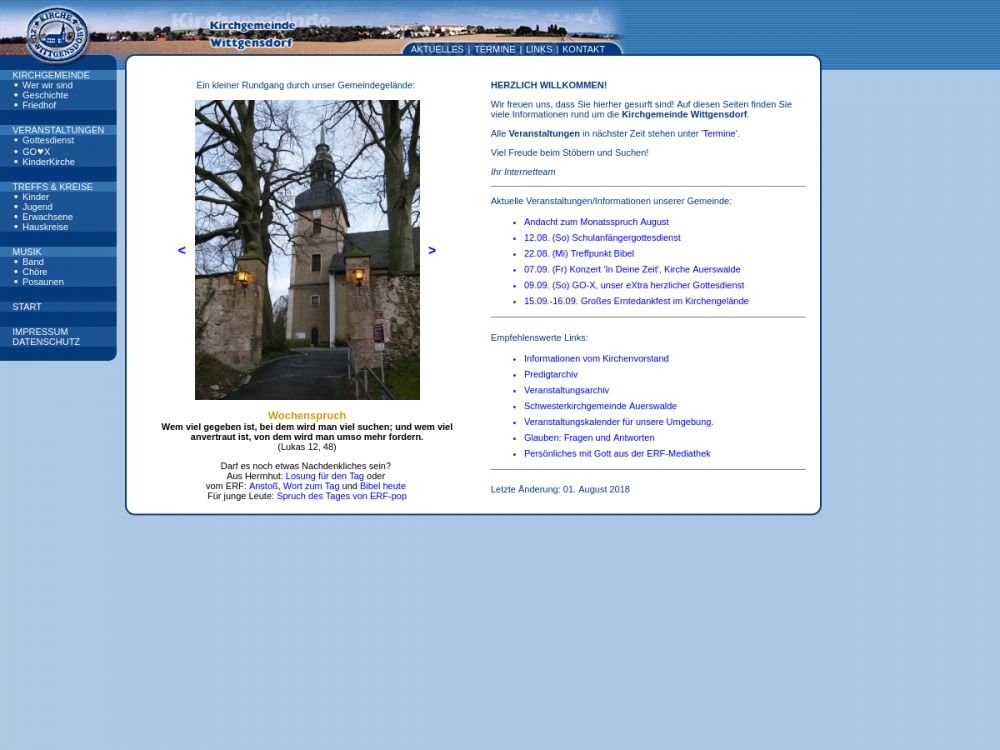 | Gottesdienst: | normal sonntags 10:00 |