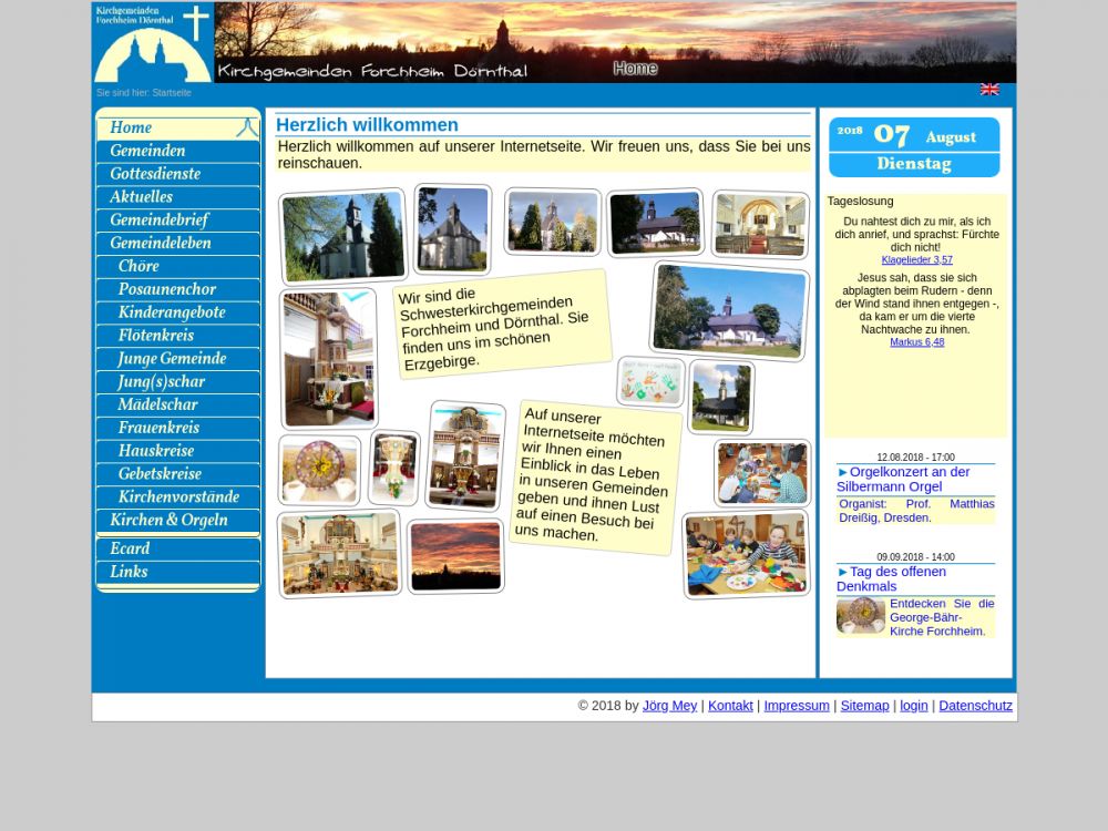 | Gottesdienst: | Sonntag 8.30 oder 10.00 Uhr wechselnd |