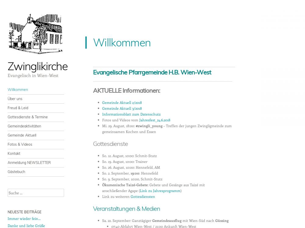 | Gottesdienst: | Sonntag 10:00 Uhr, jeden 1. Sonntag im Monat (Änderungen vorbehalten) Abendgottesdienst um 19:00 |