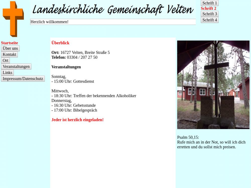 | Gottesdienst: | Sonntag 15 Uhr |