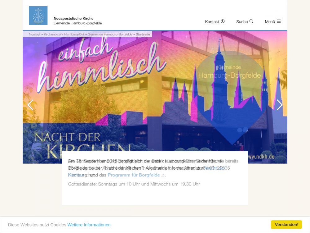 | Gottesdienst: | Sonntag 10:00 Uhr; Mittwoch 19:30 Uhr |