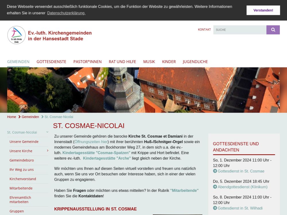 | Gottesdienst: | Sonntag 11:00 Uhr (im Wechsel in St. Cosmae und St. Wilhadi) |