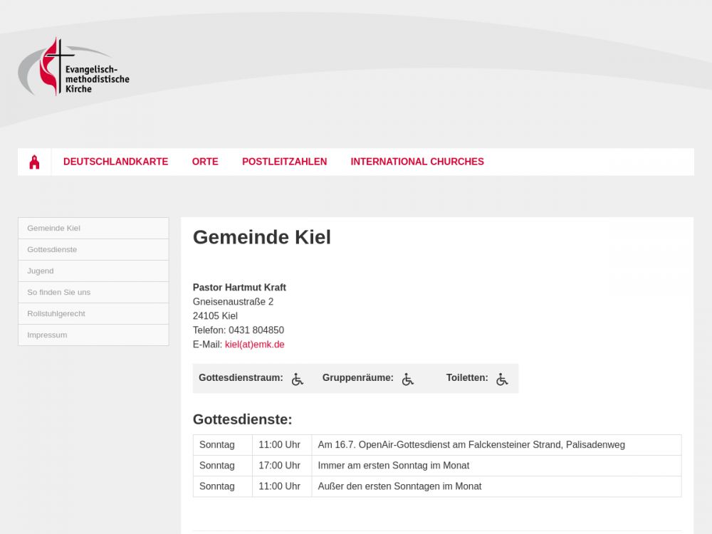 | Gottesdienst: | Sonntag 11:00 Uhr |
