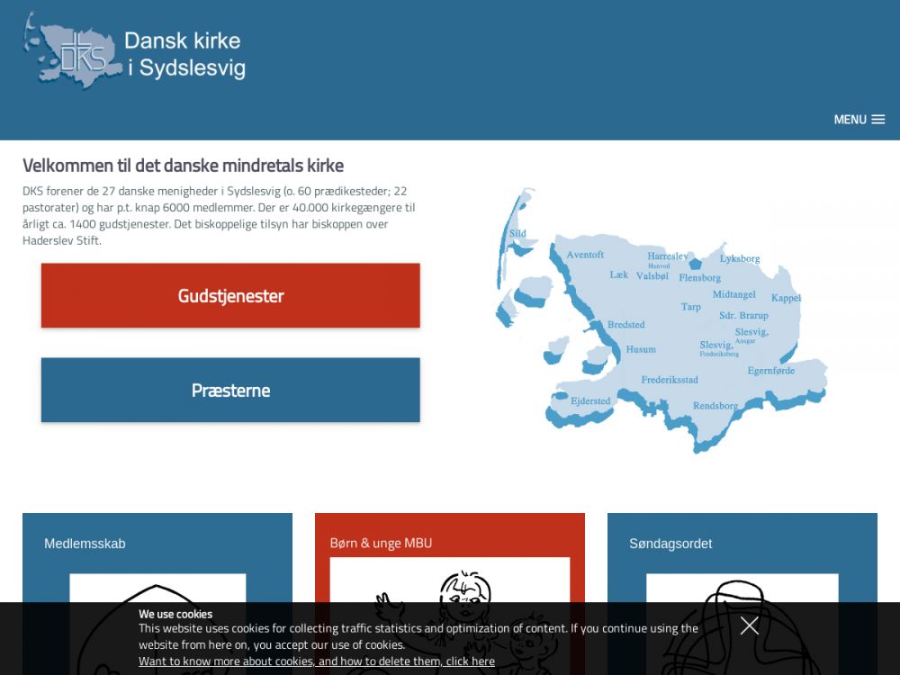 Kirchengemeinde der Dänischen Kirche in Südschleswig / Dansk Kirke i Sydslesvig im Flensburger Norden, Gottesdienste finden in der Ansgarkirke und im Kirchensaal in Kupfermühle (dänisch: Kobbermølle) statt. Gottesdienstsprache ist Dänisch.Gemeinde-Info
