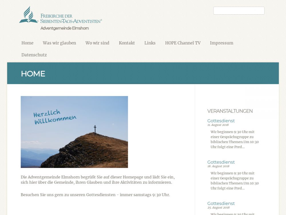 Das Ziel der Menschen in der Adventgemeinde Elmshorn ist es, Menschen aller Generationen ein geistliches Zuhause zu geben. Zunächst wollen wir ein Ort sein, an dem sich Menschen begegnen können. Außerdem wollen wir uns an der Bibel ausrichten und von Jesus Christus lernen, wie sein Leben und seine Worte relevant für unser Leben sein können.Die Gemeinde zeichnet sich durch eine herzliche Atmosphäre in den Gottesdiensten aus. Jeden Samstag um 9.30 Uhr findet ein Bibelgespräch über einen aktuellen Bibelabschnitt statt. Gegen 10.30 Uhr wird der Predigtgottesdienst gefeiert.