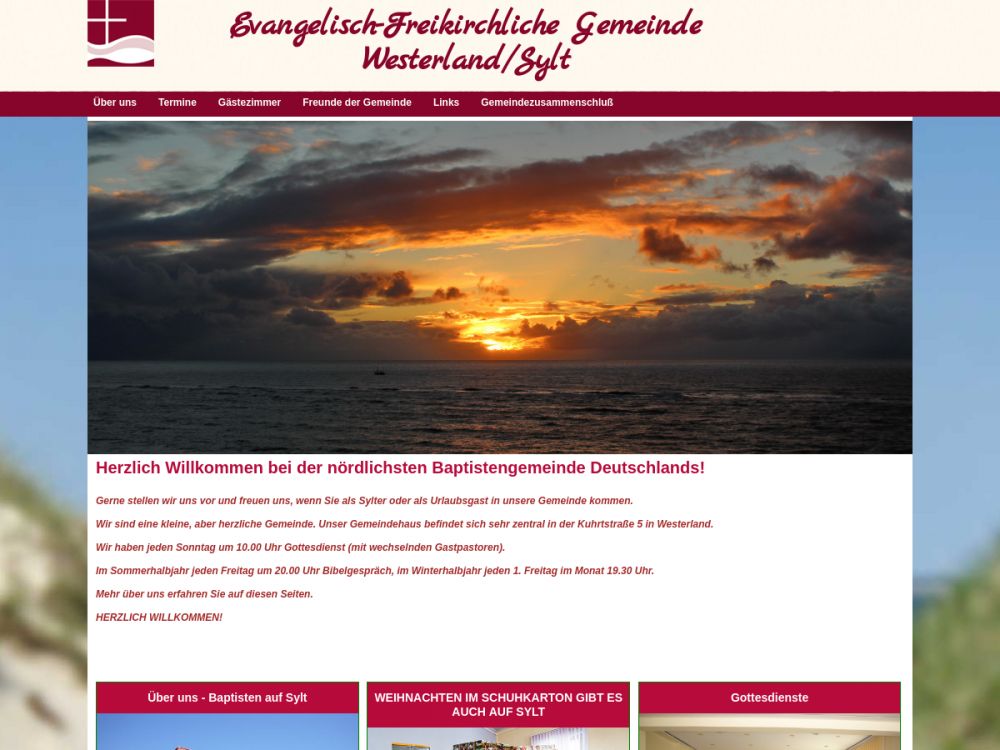 Herzlich Willkommen bei der nördlichsten Baptistengemeinde Deutschlands!Wir freuen uns, wenn Sie als Sylter oder als Urlaubsgast in unsere Gemeinde kommen.