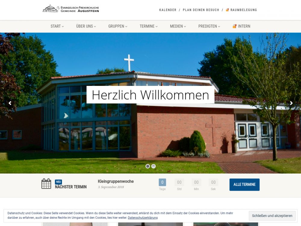 Wir sind eine freikirchliche Gemeinde im Herzen von Augustfehn. Wir feiern fröhliche Gottesdienste mit begeisternder Musik und tief in Gottes Wort verankerten Predigten. Wir sind offen für alle Besucher, die uns kennen lernen wollen.Gemeinde-Info