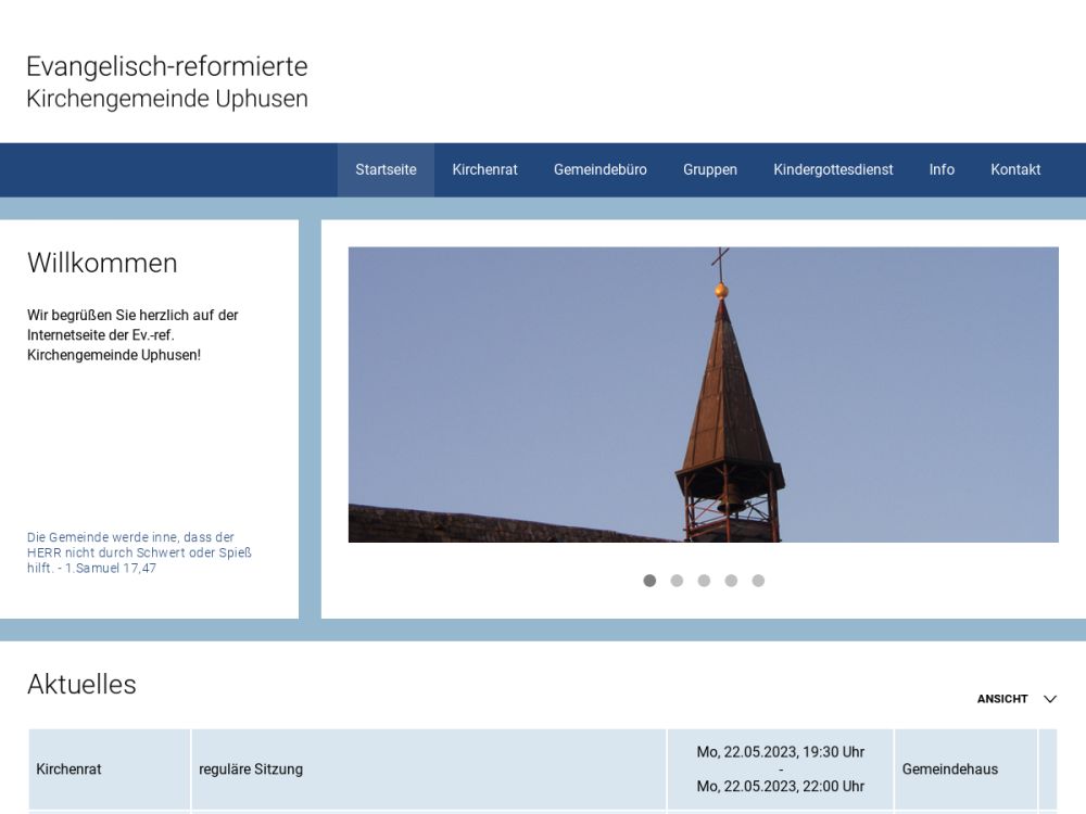 Leider sind wir vakant. Deshalb finden unsere Gottesdienste zurzeit nur vierzehntägig und manchmal unregelmäßig statt. Bitte informiert Euch unter https://www.kirche-uphusen.de. Danke!Gemeinde-Info