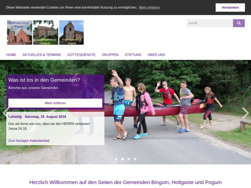 Die Matthäigemeinde Bingum ist eine Landgemeinde der Kreisstadt Leer im ostfriesischen Rheiderland. Die Gemeinde hat eine aktive Jugend-, Kleiderbörsen- und Schularbeit. Die Rheiderländer Kirchenstiftung der Gemeinden Bingum und Holtgaste fördert das Gemeindeleben seit 2007. Der Bingumer Gospelchor Celebration gestaltet Gottesdienste und Konzerte und freut sich über Ihr Interesse! Die Gemeinde ist pfarramtlich mit den Gemeinden Holtgaste und Pogum verbunden.Gemeinde-Info