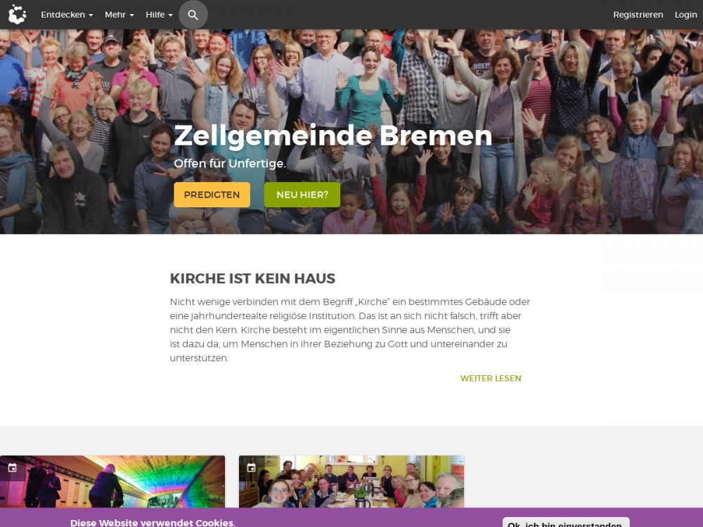 Zellgruppen orientierte Gemeinde, die sich sonntags im Konsul-Hackfeld-Haus trifft.Gemeinde-Info
