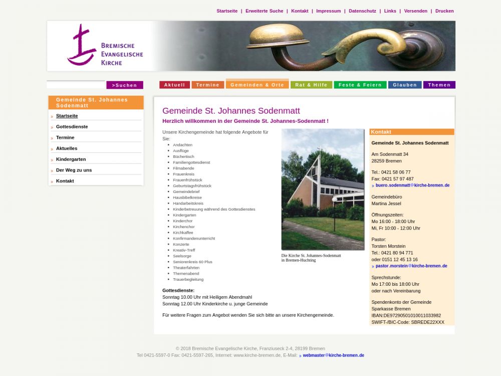 | Gottesdienst: | Sonntag 10:00 Uhr |