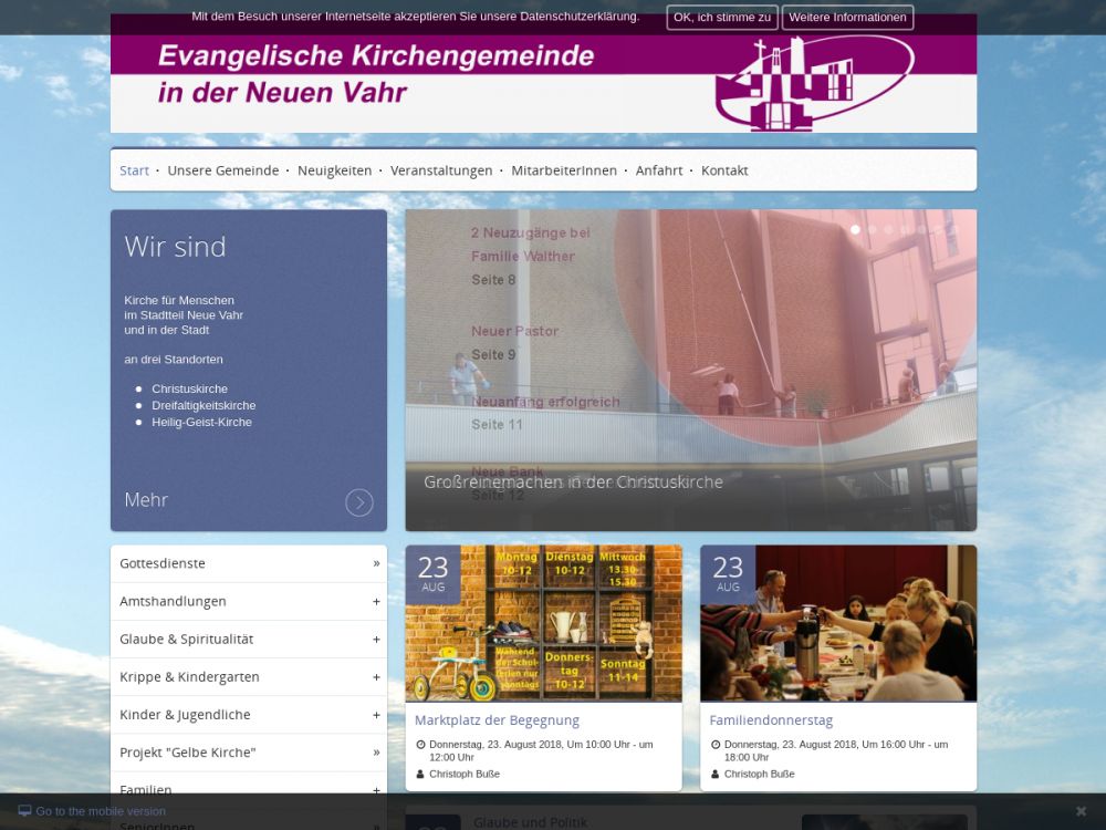 Eine Gemeinde mit 3 Gemeindezentren in der Neuen VahrChristuskirche (Spiritualität), Dreifaltigkeitskirche (Kinder-und Jugendarbeit) und Heilig-Geist-Kirche (Sozialdiakonie)