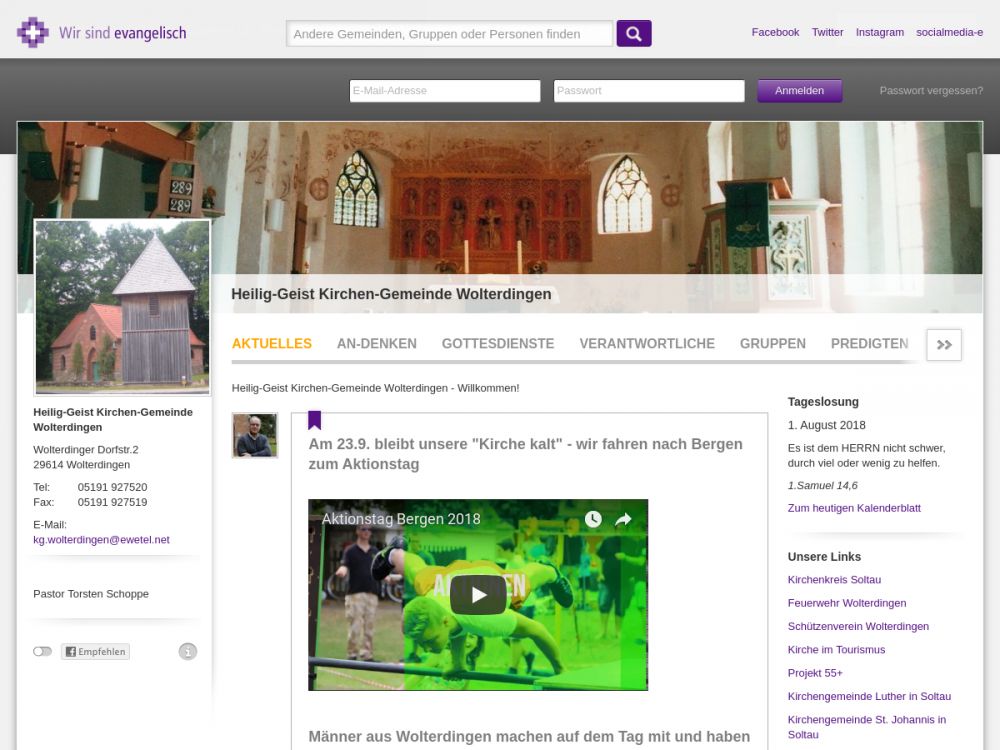 | Gottesdienst: | Sonntag 10:00 Uhr |