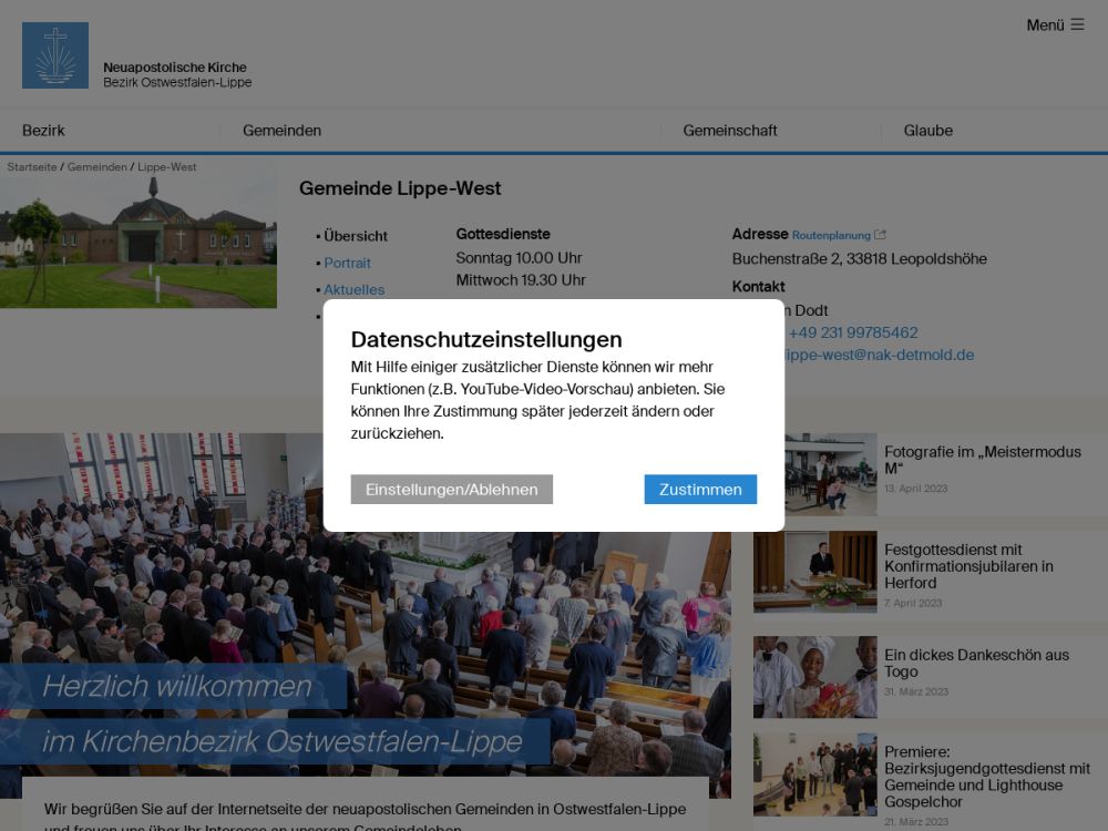 Die Gemeinde Lippe-West gehört zum Kirchenbezirk Detmold (www.nak-detmold.de). Der Bezirk Detmold ist Teil der Neuapostolischen Kirche Westdeutschland (www.nak-west.de).Gemeinde-Info