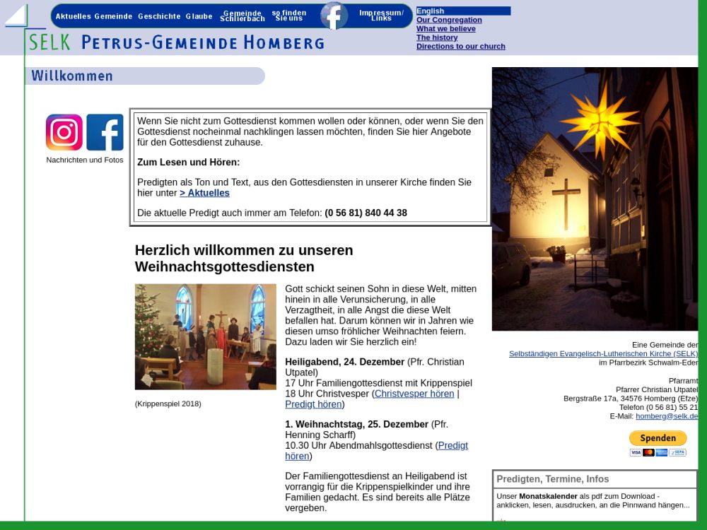 | Gottesdienst: | Sonntag 9:00 oder 10:30 Uhr im Wechsel. Ostersonntag: 8 Uhr |