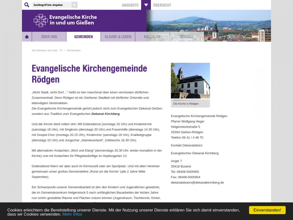 Die Evangelische Kirche in Rödgen, einem Stadtteil von Gießen im Landkreis Gießen in Mittelhessen, ist eine zweizonig gegliederte Predigtkirche, die 1811 in barocker Tradition anstelle eines mittelalterlichen Vorgängerbaus errichtet wurde. Der im Kern gotische Chorturm geht in den ältesten Teilen auf das 13. Jahrhundert zurück. Die Kirche mit ihrem Mansarddach und der zweigeschossigen welschen Haube prägt das Ortsbild und ist hessisches Kulturdenkmal.Gemeinde-Info