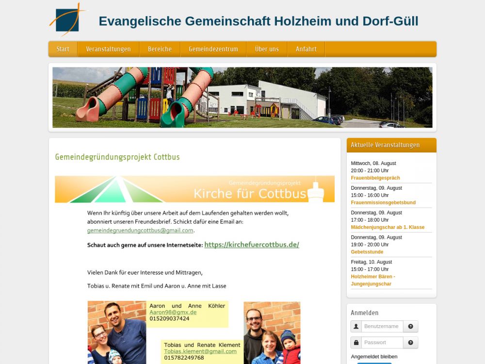 Wir sind eine eigenständige Evangelische Gemeinschaft in Holzheim und Dorf-Güll, die aber eng mit dem Chrischona Gemeinschaftswerk (CGW) zusammenarbeitet. Die meisten Veranstaltungen finden in unserem Gemeindezentrum in Holzheim statt.Gemeinde-Info