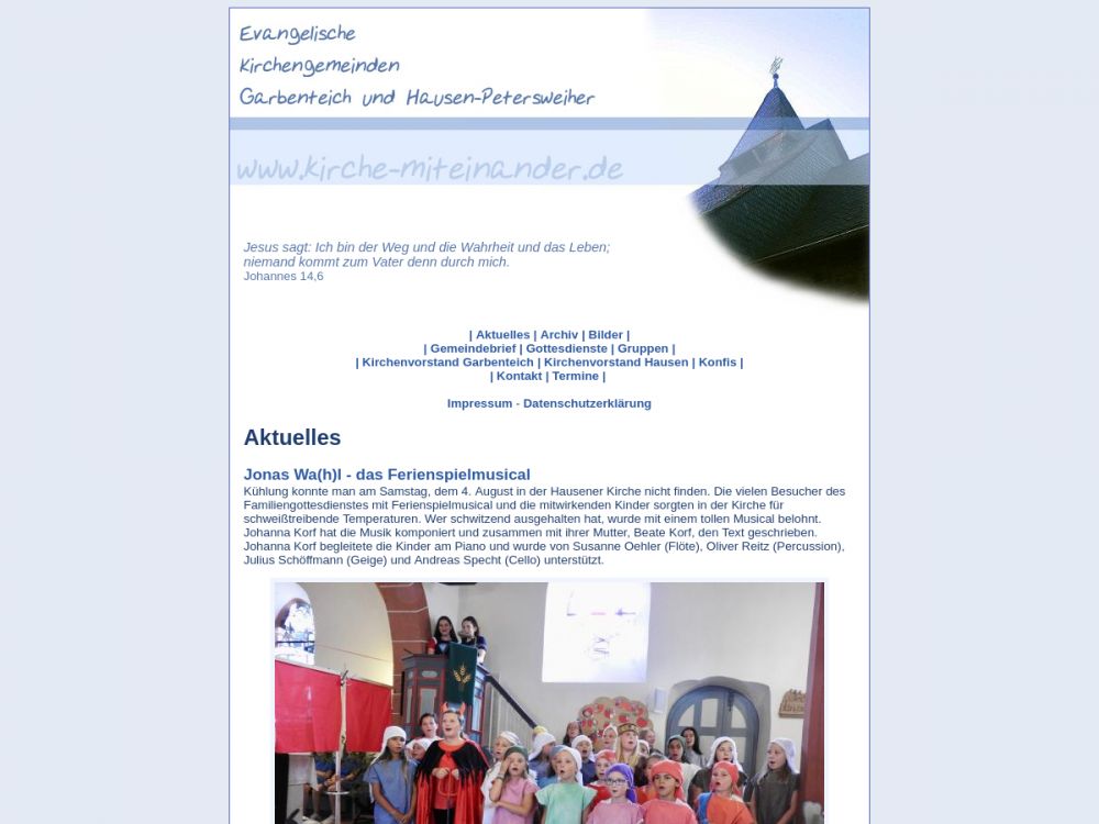 Unsere Gemeinde im Umfeld der Universitätsstadt Gießen ist dörflich geprägt.„Kirche miteinander“ ist nicht nur der Name unseres Gemeindebriefes und der Internetseite unserer Kirchengemeinden, sondern steht auch stellvertretend für das Gemeindeleben in unseren pfarramtlich verbundenen Kirchengemeinden Garbenteich und Hausen mit Petersweiher. Daher finden einige der angegebenen Angebote nur in einer der Gemeinden statt.