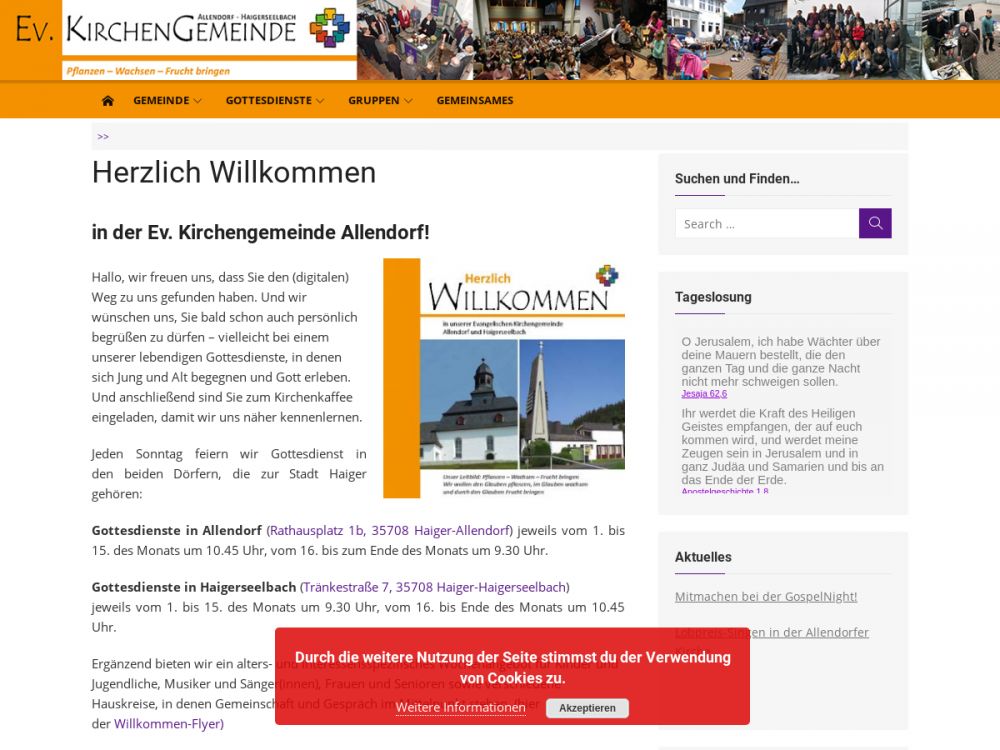 | Gottesdienst: | Sonntag 9.30 und 11 Uhr in Allendorf und Haigerseelbach |