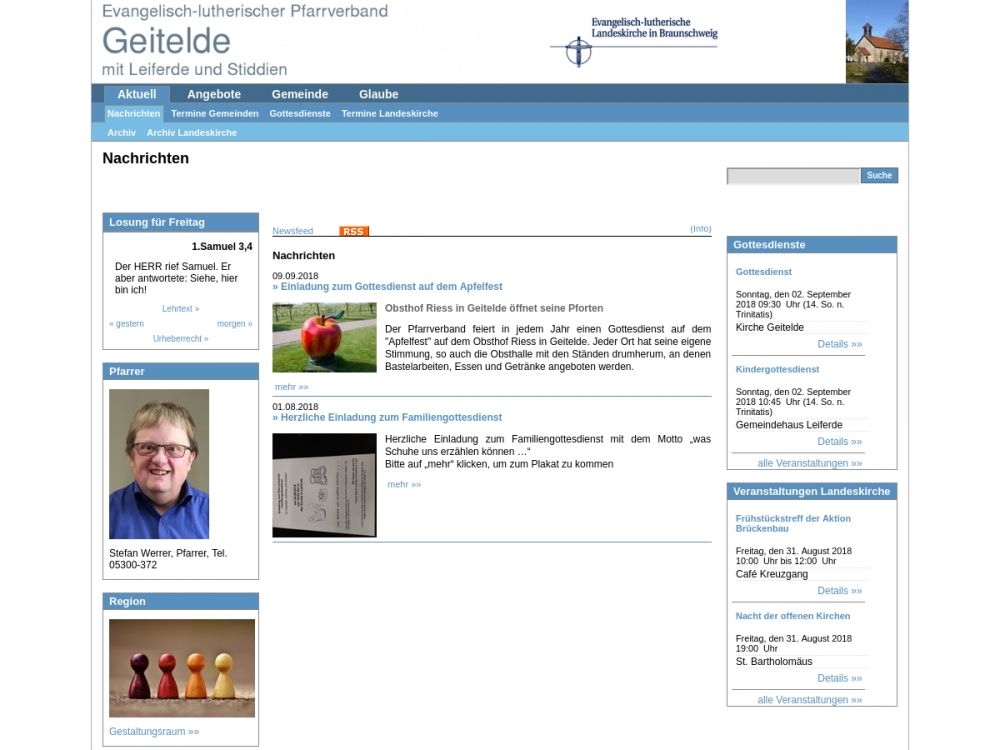wir sind in einem Pfarrverband mit Leiferde und Stiddien. In Leiferde ist ebenfalls sonntäglich Gottesdienst und in Stiddien einmal im Monat. Bitte informieren Sie sich auf der Homepage.Gemeinde-Info