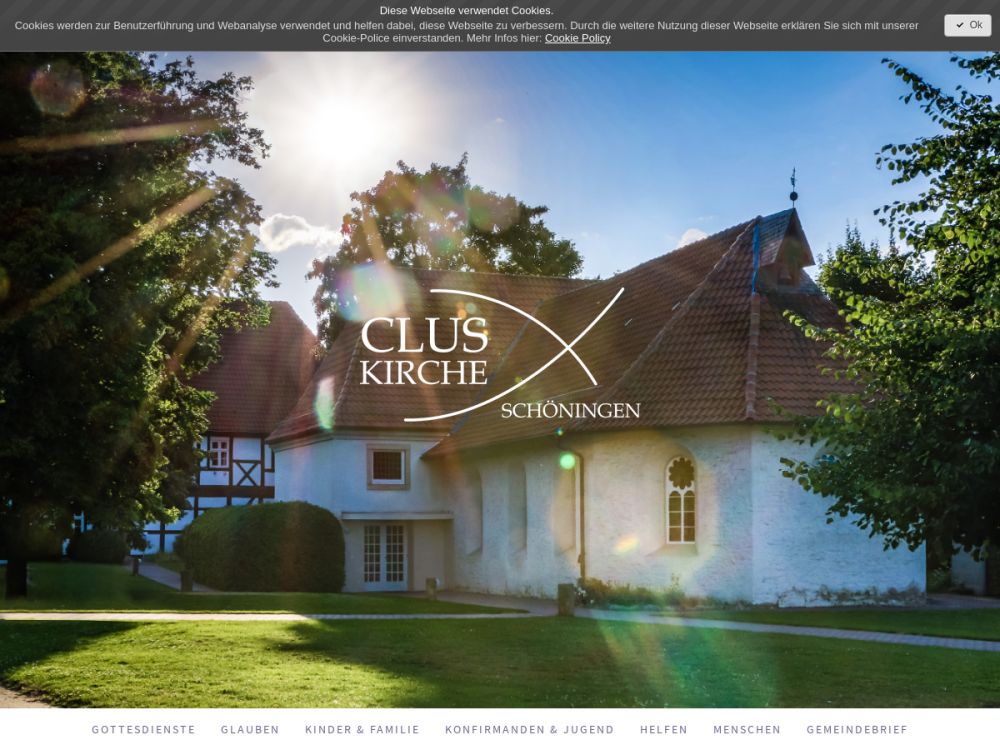 Die Clus-Gemeinde, Schöningen, ist eine der Ev.-Luth. Landeskirche in Braunschweig angehörende Gemeinde mit lebendigem und vielfältigem Gemeindeleben. Ihr Profil umfasst neben verschiedenen Gottesdienstformen Angebote für alle Altersgruppen.Kirche gegenüber der Aral-Tankstelle
