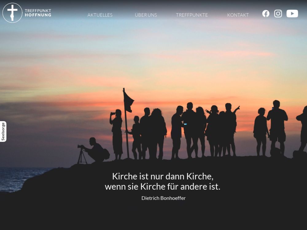 Treffpunkt Hoffnung e.V. ist eine Freie Evangelische Gemeinde in Wermelskirchen und wurde am 15.1.13 gegründet. Als junge Gemeinde haben wir den Traum, Kirche für Menschen wieder dynamisch, lebensnah und zeitgemäß zu gestalten. Dabei ist der Glaube an Gott und seinen Sohn Jesus Christus unsere zentrale Grundlage und Ausrichtung.Gemeinde-Info