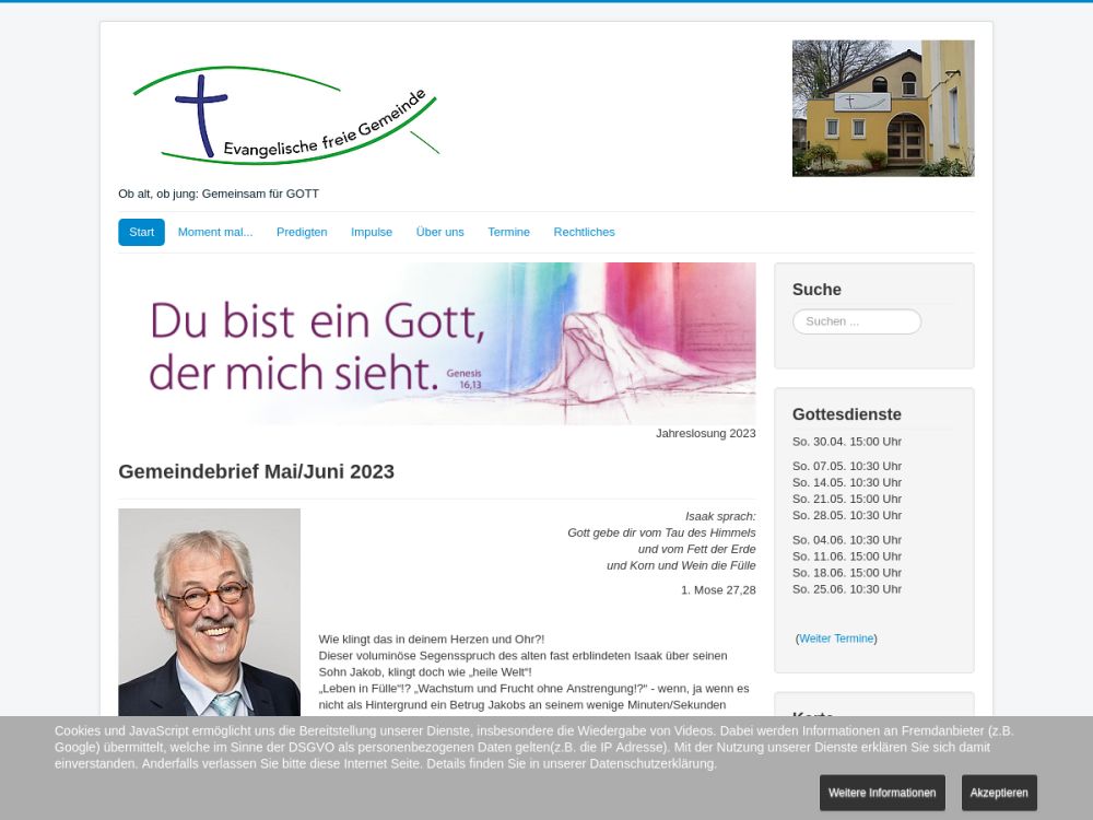 | Gottesdienst: | Sonntag 10:30 Uhr |