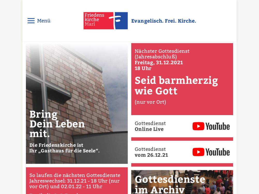"Bring Dein Leben mit" So steht es über unserem Eingang. Wir verstehen uns als "Gasthaus" für die Seele. Gemeinsam wollen wir entdecken, was Gottes Wille für unser Leben unser Lebene ist und wie er unser Leben verändern kann. Wir glauben, dass er uns in Jesus Christus ein unvergleichliches Angebot eine erfüllten Lebens macht. Das wollen wir nach dem Motto "Suchet der Stadt Bestes" auch in unsere Umgebung tragen.Gemeinde-Info
