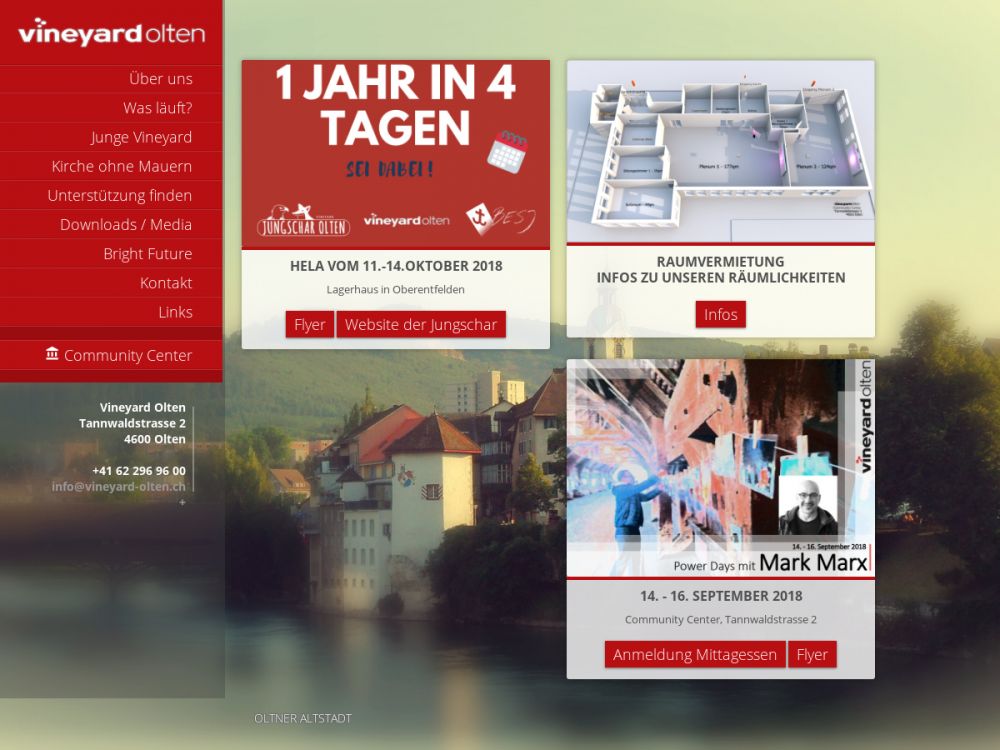 unsere Gottesdienste finden im Hotel Arte statt, nicht am selben Ort, wie die Postanschrift ist. Aktuelle Infos findet man auf der Webseite.Gemeinde-Info