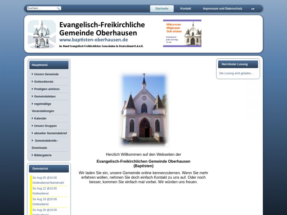 | Gottesdienst: | Sonntag 10:00 Uhr |
