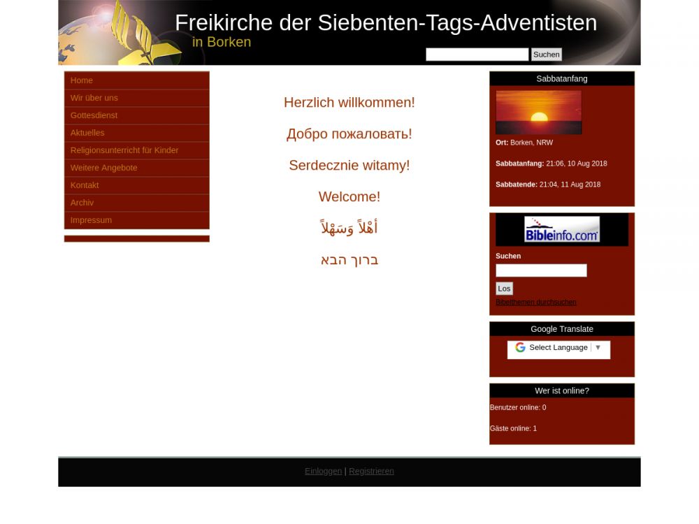 | Gottesdienst: | Samstag 9:30 Uhr |