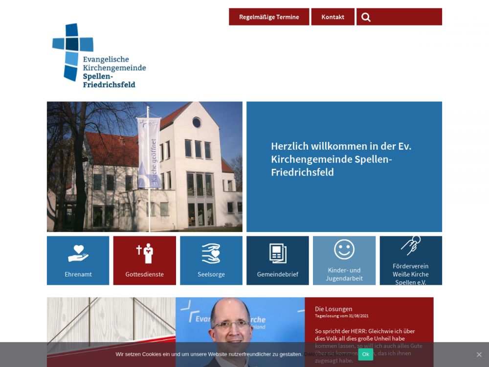 | Gottesdienst: | Sonntag 10.00 Uhr Spellen / 10.00 Uhr Friedrichsfeld |