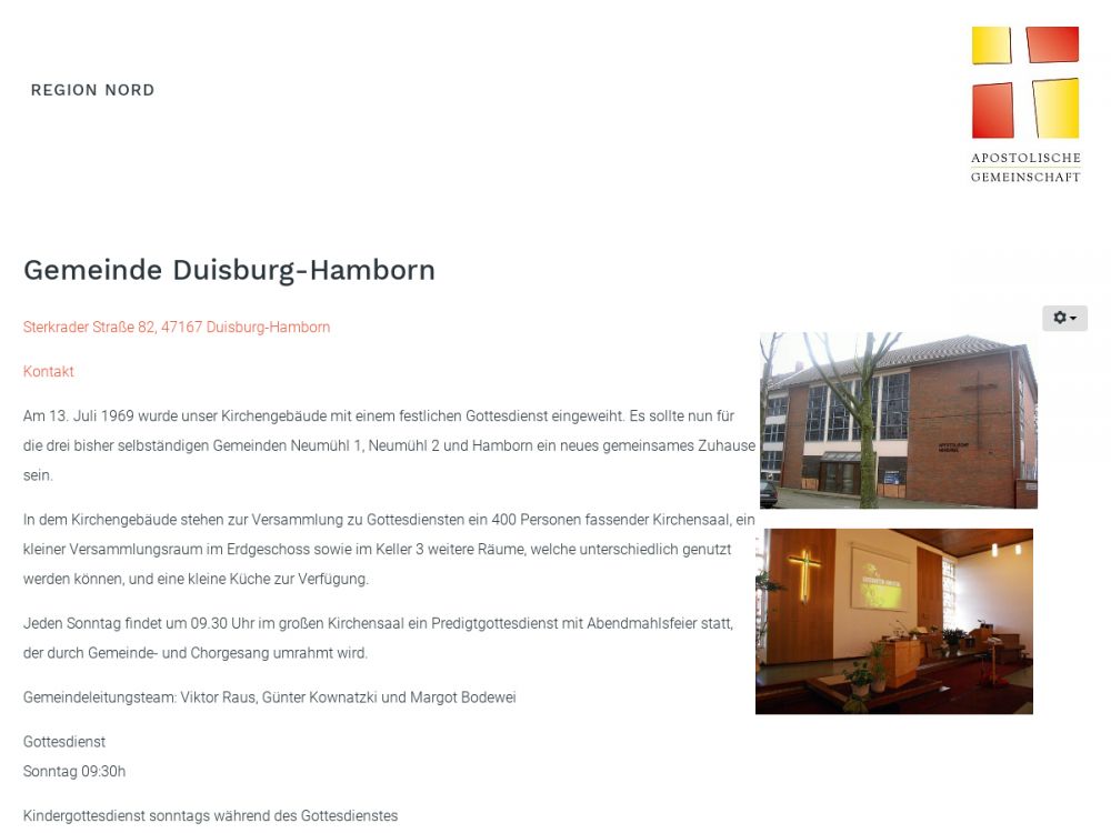 Wir sind eine von drei Gemeinden in Duisburg. Unsere Gemeinde ist etwas älter aber wir freuen uns dennoch über Besucher, besonders jüngere.Gemeinde-Info