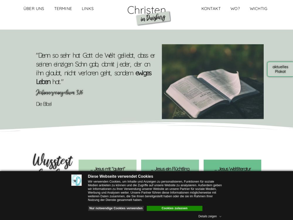 Wir sind Christen aus Duisburg und Umgebung, die an Jesus Christus glauben und durch ihn Frieden mit Gott und neues Leben* empfangen haben. Wir glauben der Bibel als Gottes Offenbarung an uns Menschen. Für uns ist sie absolut wahr, zuverlässig und verbindlich. Wir vertreten keine spezielle Lehre oder Konfession, auch keine religiöse Sekte oder Organisation.Als Christen wollen wir uns auch im Alltag dem Willen Jesu unterordnen und durch unser Leben für andere Menschen Wegweiser zu Jesus Christus sein. Unsere lebendige Beziehung zu Ihm und Sein Auftrag veranlassen uns, die Botschaft des Evangeliums durch regelmäßige Veranstaltungen, Vortragsabende, diverse Schriften und Bücher weiterzugeben.
