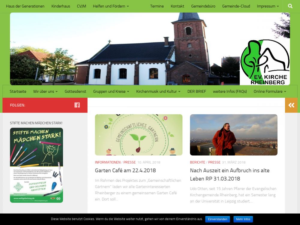 Die Ev. Kirchengemeinde Rheinberg ist eine Gemeinde mit einer 430 jährigen Tradition. Sie versteht sich heute als eine volkskirchlich-missionarische Gemeinde, deren Ziel es ist, Menschen zum Glauben an Jesus Christus einzuladen und ihnen eine Heimat zu bieten. Dem entsprechend lautet einer der Leitsätze der Gemeindekonzeption: Wir schaffen Orte, an denen Menschen ein Zuhause finden und Gottes Nähe erleben.Gemeinde-Info