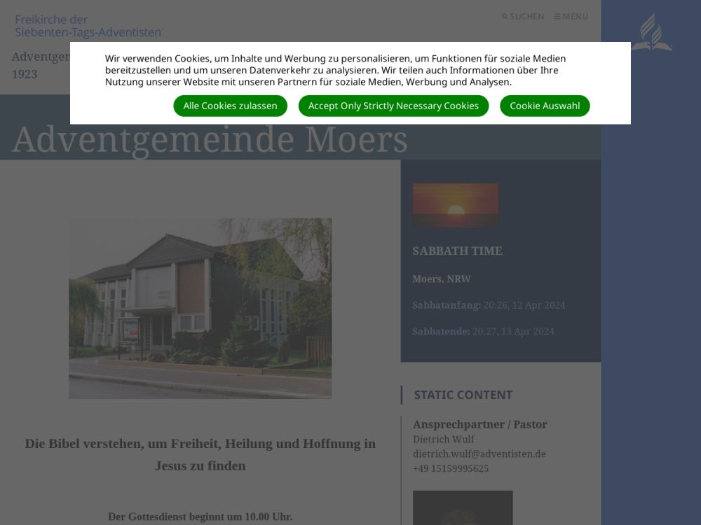 Adventgemeinde Moers , Freikirche der Siebenten-Tags-Adventisten (STA)