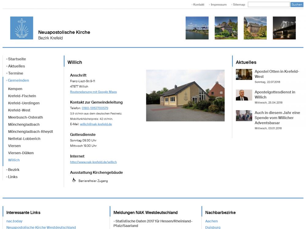 | Gottesdienst: | Sonntag 09:30 Uhr; Mittwoch 19:30 Uhr |