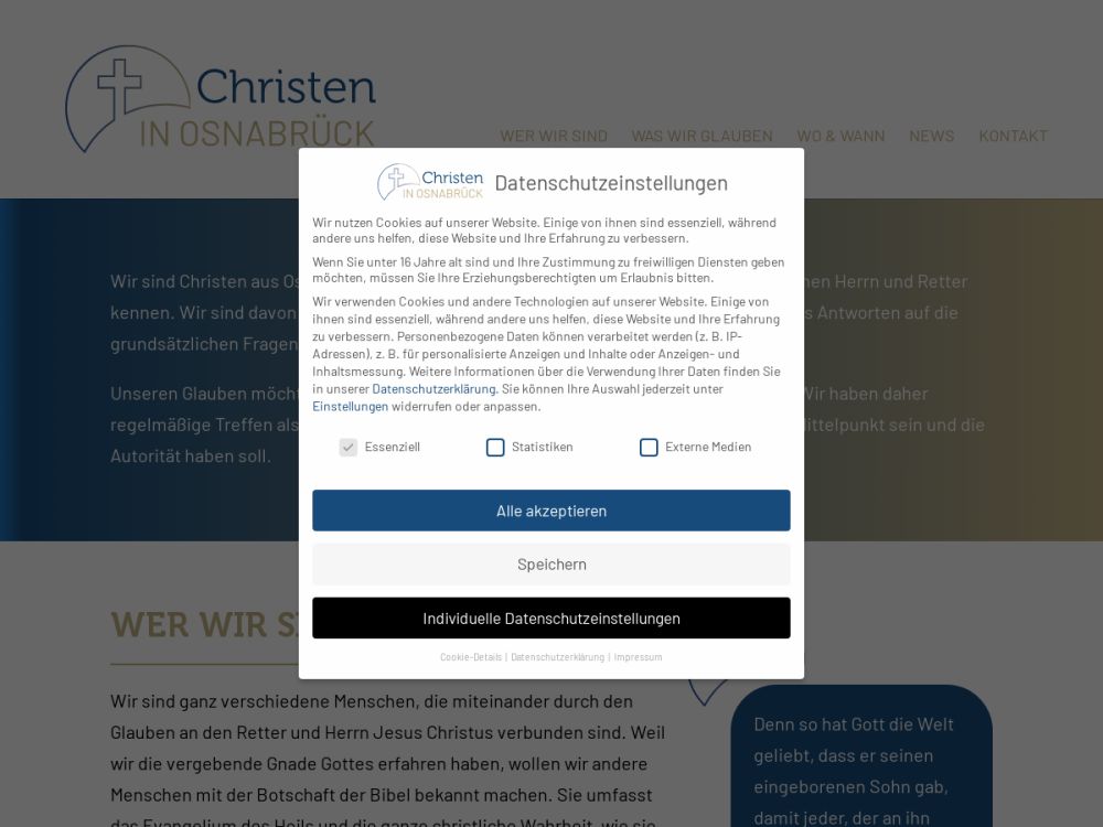 Wir sind Christen aus Osnabrück und Umgebung, die Jesus Christus als ihren persönlichen Herrn und Retter kennen. Wir sind davon überzeugt, dass die Bibel auch heute noch topaktuell ist und uns Antworten auf die grundsätzlichen Fragen des Lebens gibt.Unseren Glauben möchten wir in Gemeinschaft mit anderen Christen leben und teilen. Wir treffen uns regelmäßig Sonntags um 09:30 Uhr zum Abendmahl und anschließend um 11:00 Uhr zur Predigt sowie Donnerstags um 19:30 Uhr zur Gebets- und Bibelstunde.