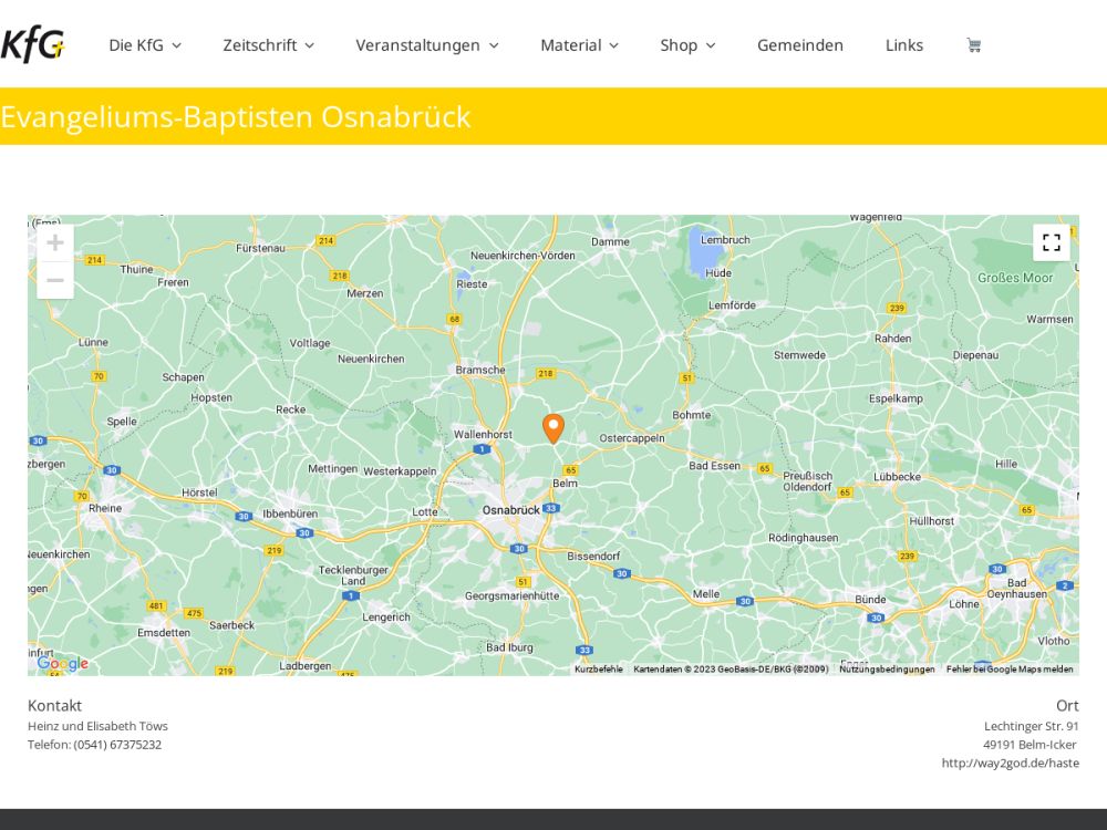 | Gemeindeart: | Evangelisch-Freikirchliche Gemeinde (EFG, Baptisten, Brüder) |